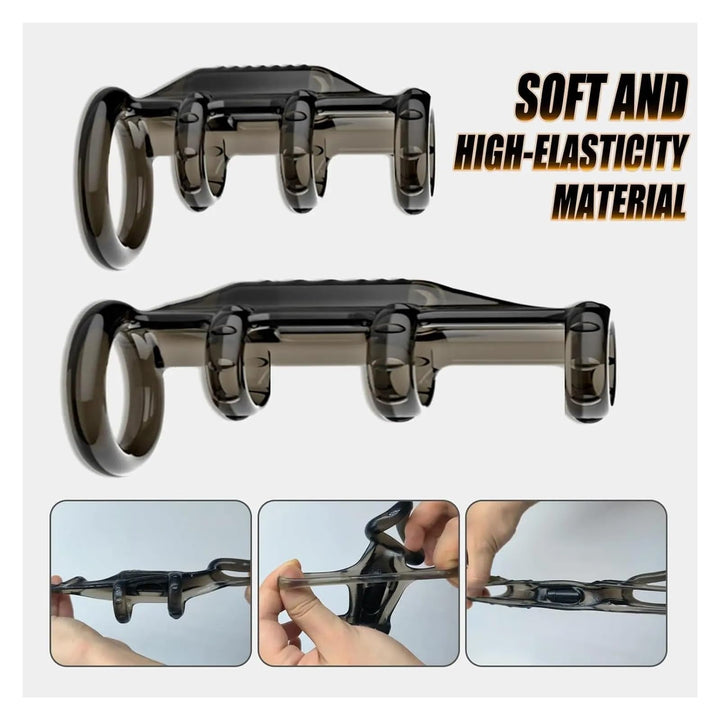 Universal Fit: Super-elastic TPE with an ergonomic design adapts to all penis sizes, feeling like a natural extension of the body.